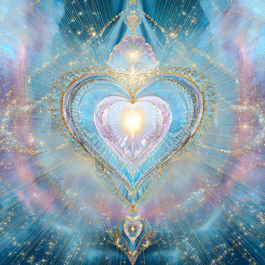 Im Zentrum dieses Netzes leuchtet dein Herz-Kristall – der ewige Funke, der dich mit allen Seelen verbindet.